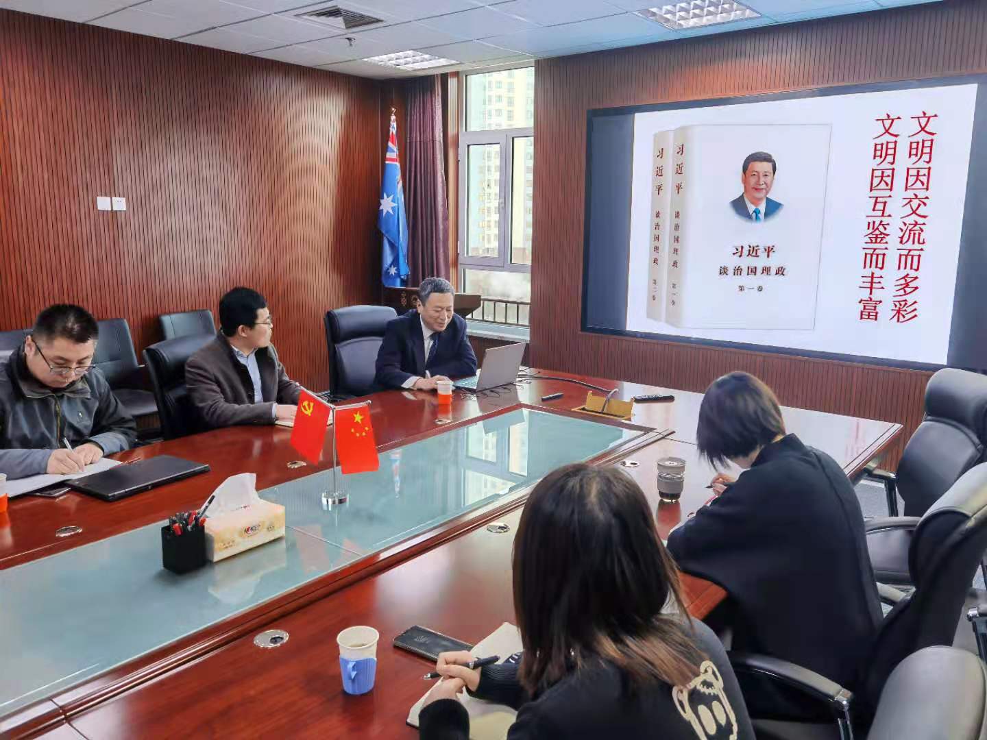 为深入学习国际化交流历史,进一步坚定对外开放办学方向,12月8日,悉尼学院邀请学校政策宣讲团专家刘新为学院做题目为《文明因交流而多彩,文明因互鉴而丰富----yl7703永利集团中日文化交流的借鉴与启示》的主题宣讲。悉尼学院党总支书记王建军、副院长韩鹏、党总支副书记单旖旎及全体悉尼学院党员教师参加讲座。
