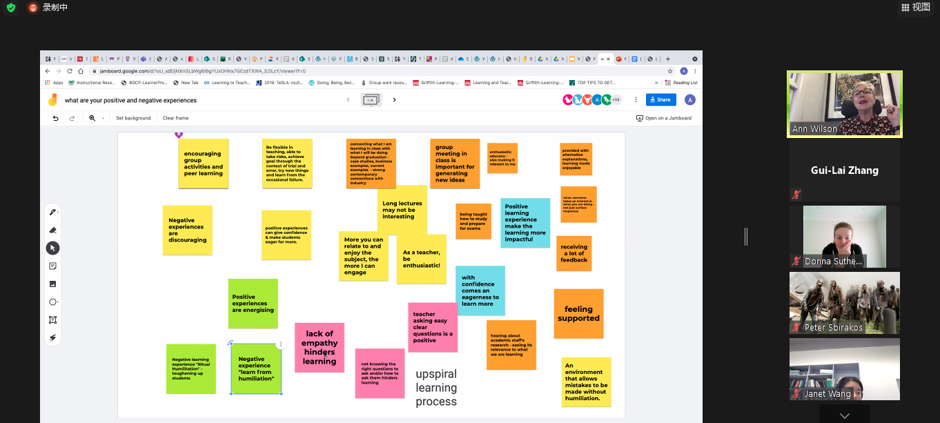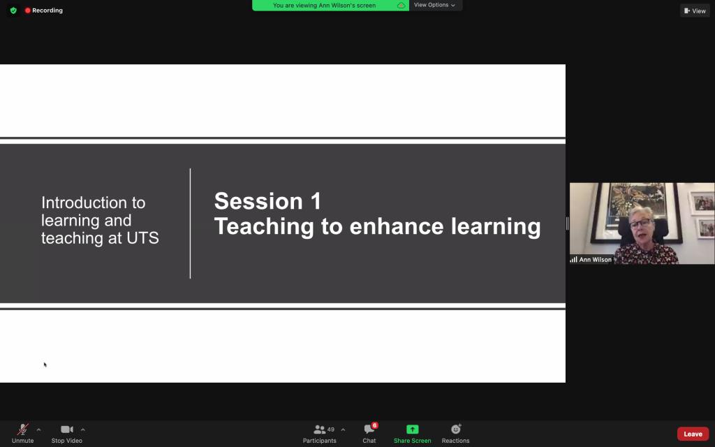 教师国际培训包括两个项目,即“未来式教学培训”项目(Teaching for Learning.Future Program)与“教学观摩”项目(Shadowing Program)。“未来式教学”培训是UTS为新入职的老师举办的培训。有着30年教学经验的UTS资深课程设计导师Ann Wilson,将与她的教学团队成员 Jo McKenzie 教授,Dimity Wehr,Alisa Percy,Franziska Trede一起,通过视频会议以工作坊(Workshop)的形式,组织学员们以讲授和分组讨论相结合的方式学习UTS独具特色的以实践为导向的教学模式。“教学观摩”项目中,悉尼学院引进课程共课教师将进入UTS的线上课堂,观摩UTS合作教师的课程,便于更好地了解引进课程的课程内容和课堂组织,为2021秋季学期的引进课程课堂教学奠定坚实的基础。
