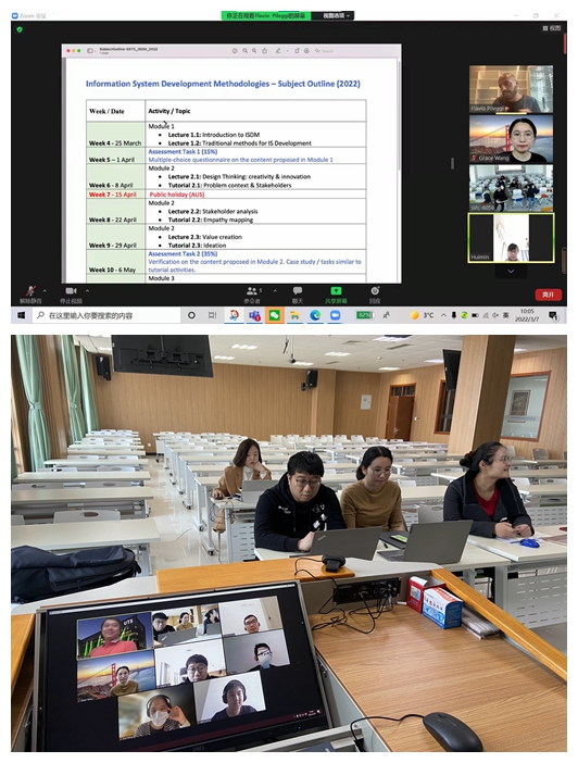 在当前全国疫情多点频发,防控形势严峻的情况下,悉尼学院(sstc)国际课程教学开展再次面临中方共课教师无法在课堂指导学生的新考验。面对新困难,学院迅速成立国际课程保障小组,积极同中外双方沟通,再次探索国际课程外方教师搭配中方教师的授课组合,利用视频会议、培训等形式与合作高校悉尼科技大学(UTS)开展高频次交流、备课,在不断探索中,保障国际课程高质量开展。