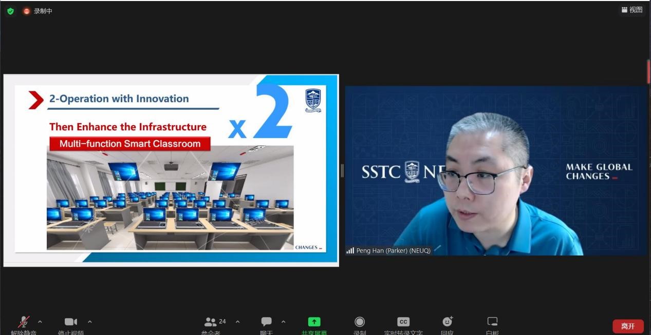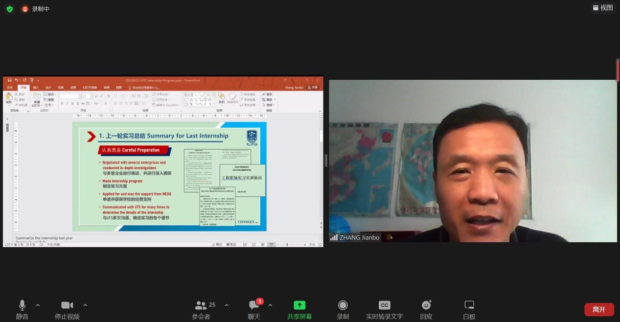 张建波对工程职场实习课程做专题汇报,向澳方展示了中方为上一轮实习开展做出的努力,以及为应对疫情精心为下学期的课程所制定的线上、线下两种教学方案。