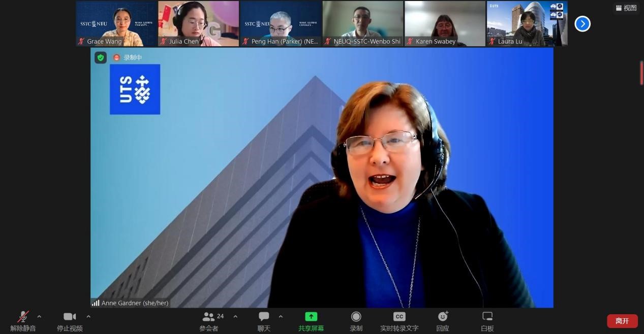 Anne Gardne在开场致辞中对过去一年中UTS教授课程进行了总结,高度评价了双方的各项工作。希望未来双方拓宽合作领域,在教学、科研以及学生联合培养项目上开创新局面。