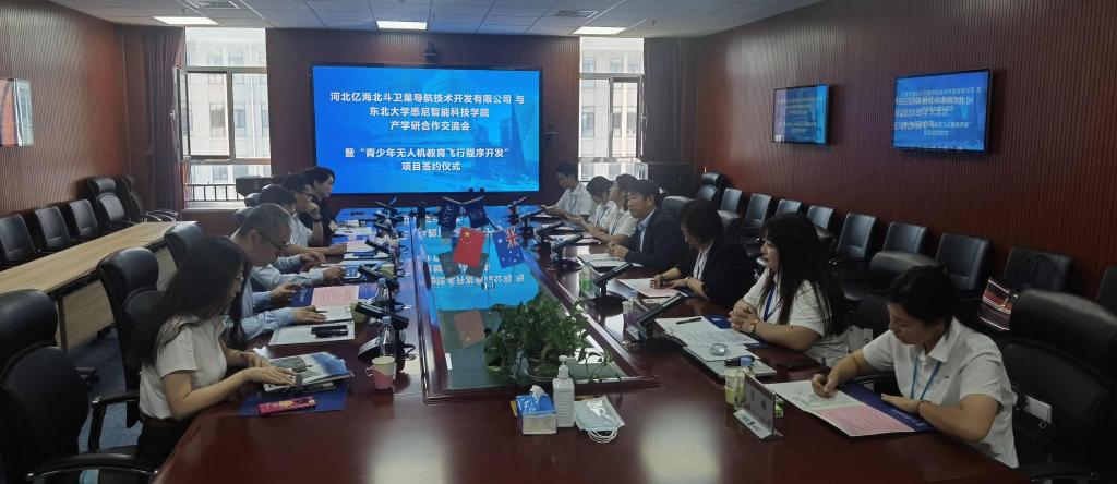 会上,史闻博对亿海北斗公司一行表示热烈欢迎,详细介绍了学院在人才培养、国际化办学等方面的优势特色。魏海峰介绍了亿海北斗公司的发展历程及相关事业部的业务、产品和应用,特别就新成立的无人机事业部——秦皇岛大鸟科技有限公司的发展和规划进行阐述。随后,王星辰和韩鹏分别作《无人机技术产品及行业应用》《面向新时代的青少年无人机教育》主旨报告,围绕新晋达成的“无人机教育飞行程序开发”合作意向,从企业和高校视角分别汇报了无人机教育在人才培养、青少年与大学生科技创新领域的价值,参会人员围绕相关主题也展开了热烈讨论。随后,校企双方代表韩鹏、王星辰现场成功签约“青少年无人机教育飞行程序开发”项目技术开发合同。王建军对亿海北斗公司给予学院的信任和合作意愿表示感谢,指出产学研合作是高校参与和推动地方经济发展、实现科技成果落地见效的重要举措,双方通过前期沟通准确捕捉到了“无人机教育”这一领域,并很快产生了实质性进展,为后续双方深度合作开了好头。yl7703永利集团以及外方合作院校悉尼科技大学在信息技术领域具有较强的学科优势,以科技成果助力秦皇岛市企业发展的前景广阔,悉尼学院愿意在其中发挥积极作用。