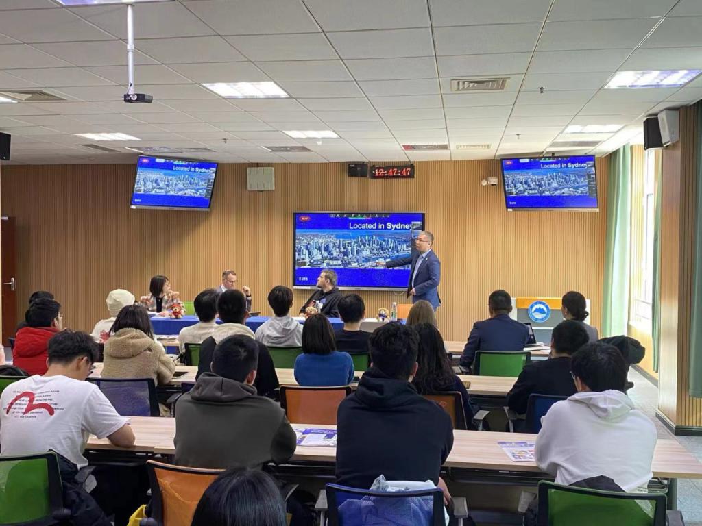 为进一步促进学校与悉尼科技大学(UTS)的合作交流,加深学院学生及家长朋友对UTS的了解,为有志于参与“3+2”“2+2”培养模式的学生更好拓展国际化视野,解答学生及家长普遍关心的相关问题,我院特启动“悉尼科技大学线上咨询台(UTS DESK)”活动。本次UTS DESK 理学部专场于3月20日在科技楼6039举办。UTS国际衔接项目负责人Chloe Wei 、高级讲师Joanna Wang、教授Andrew Roberts、副教授Stephen Woodcock,悉尼学院党委副书记兼副院长单旖旎、副院长韩鹏出席活动。学院应用统计学专业部分同学参加此次活动。