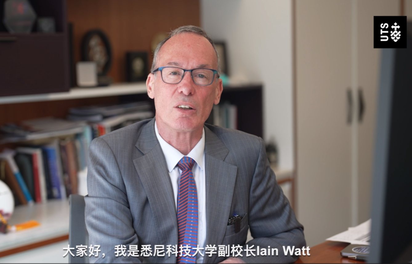 悉尼科技大学国际事务副校长Iain Watt通过视频致辞的方式对所有新生表示欢迎,向同学们介绍悉尼科技大学的优势和特色,说明了悉尼科技大学的强劲发展势头,鼓励全体新生建立国际视野,期待同学们能够在悉尼学院学有所成。