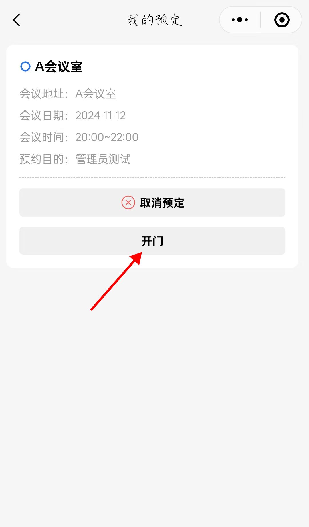 o 会议结束后,务必确认门已关闭,并在“我的预约”中点击确认关门否则影响后续使用!