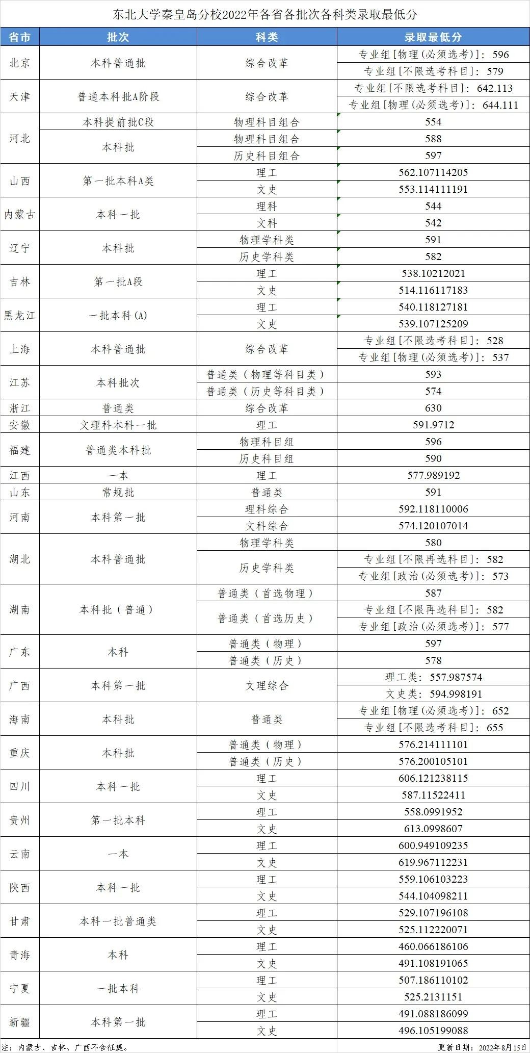 yl7703永利集团秦皇岛分校2022年各省各批次各科类录取最低分公示